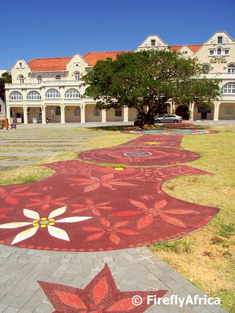 Starting on Belmont Terrace right in front of the (unfortunately closed) King Edward Hotel and leading onto the Donkin Reserve is the Welcome Carpet art piece. This Route 67 art piece by Lisbet Demeyer is a Quartz Carpet with inlaid bead artwork and acts as a welcoming celebration of the Eastern Cape’s cultures, leading the diverse visitors to the Donkin Reserve onto the park.