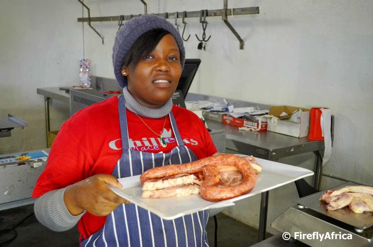 Chilleks Place in Walmer Township won the Nando’s Shisa Nyama Championship in October last year with some exceptional braai’ing and flavouring. It’s maybe not as well known as the big Shisa Nyamas in Cape Town or Soweto, but the quality of their braai is right up there. Before manager Coach and braai master Scott or any braaiers braai your meat, you actually get to choose it from the butchery on the premises (unless you order one of their mouth watering baskets). In the butchery Pabalwa and Siphosethu will help you select your meat, chicken and wors and while its being braai’d you can head next door and order a quarts beer so long to wash it down with.