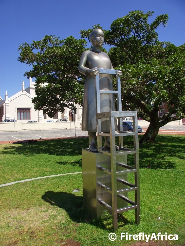 The untitled sculpture by Anton Momberg on the Donkin Reserve takes the form of a female figure without any distinct features and clothing. This leaves her neutral and open for conversation and interpretation rather than being a conceptionally specific piece. To me it also represents the women of Nelson Mandela Bay right from the early Khoi women who mined salt at Bethelsdorp, the Settler women who arrived on ships with their families in 1820 and Xhosa women who’s men fought in the Frontier Wars to modern business women, domestic workers in the kitchens, mothers, sisters and daughters.
