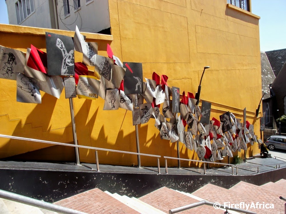 Following Route 67 up from Market Square towards the Donkin Reserve visitors would see a very interesting art piece just past St Mary’s Cathedral. The 76 Youth piece was the result of a workshop collaboration and is a statement about the ’76 generation and represents the spiritual journey undertaken by those who fought against oppression, specially those involved in the uprisings in the late 60’s and 70’s.
