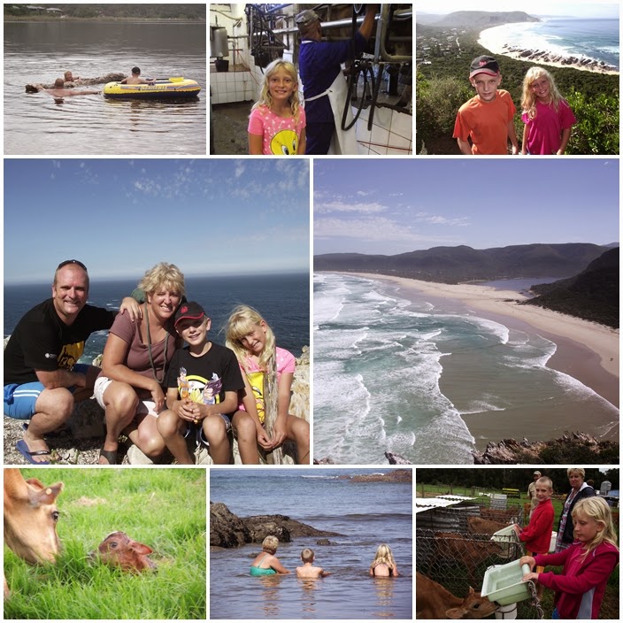 Over the Easter long weekend we decided to take do a four night camping holiday – our Easter Sho’t Left – at the Tsitsikamma Sunrise Caravan Park between the Crags and Natures Valley. Except for the R320 per night for the camp site the experiences we had cost us nothing except for the petrol to get down into Natures Valley. We Geocached, climbed the Point (also the last bit of the renown Otter Trail) east of Natures Valley, hiked to the Salt River Mouth west of the village and spend lots of time in the Groot River Lagoon. Across the road from the camp site is Natures Way Farm Stall, situated on a commercial dairy farm. We got to see how they milked the cows every afternoon (at no cost), the kids got some hands on experience with the milking process, feed the calves and on the last evening actually got to see a calf being born. Priceless experiences that didn’t have my wallet heaving.