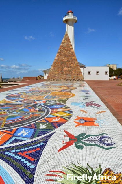 It didn’t take long for Route 67 to become a true Port Elizabeth icon and being situated on the equally iconic Donkin Reserve has become a must see to tourists visiting the city. Even though the Voting Line and the Great Flag has become two of the most identifiable art pieces forming part of the route, the one that is photographed just as much is the Piazza Mosaic. Covering 470 square meters the mosaic celebrates Port Elizabeth and the Eastern Cape’s multi-culture, heritages, diverse histories and abundant fauna and flora.