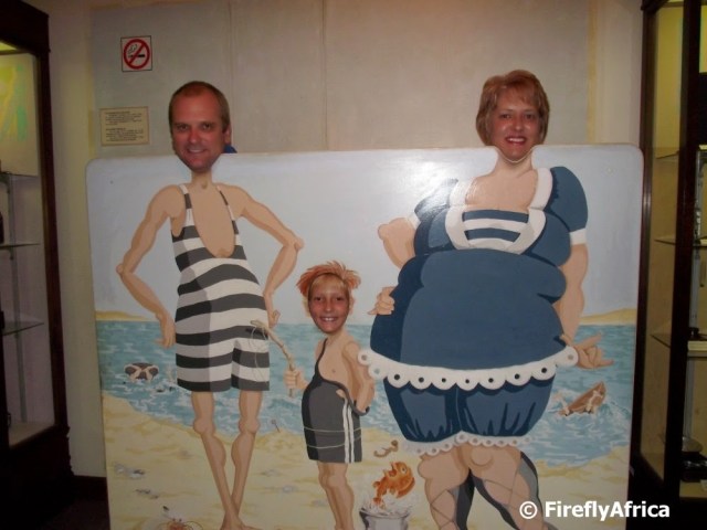 A week or so ago the Friends of Bayworld hosted a hugely successful Night at the Museum at the Port Elizabeth Museum at Bayworld. The place was packed to the bleachers and I don’t think they ever expected in their wildest dreams that they will have such an overwhelming turnout. I get to visit Bayworld fairly often for tourism purposes and it was great to take a walk around with the family for a change and share with them all the exhibits, some that has been there since my childhood days and bring back lots of memories. One of these was the cut-out in the fashion hall with Chaos Boy snapping this picture of the rest of the family.