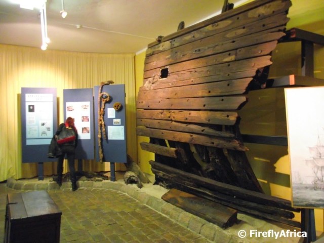 The Port Elizabeth Museum at Bayworld has an excellent exhibit of artifacts and pieces from the Dutch ship Amsterdam that ran aground close to the mouth of the Swartkops River in 1817.  The ship, captained by Hermanus Hofmeijer, hit a fierce storm in 1817 with the wind ripping apart the sails and snapping the masts.  After eleven hours of fighting to keep her afloat the battle was lost and the captain decided to run her aground between the Zwartkops and Coega rivers.  Only three of the 223 men aboard were lost.  At that stage Port Elizabeth didn’t exist as a town yet and only consisted of a fort and garrison so the crew were taken to Uitenhage before sailing back to the Netherlands a month later.