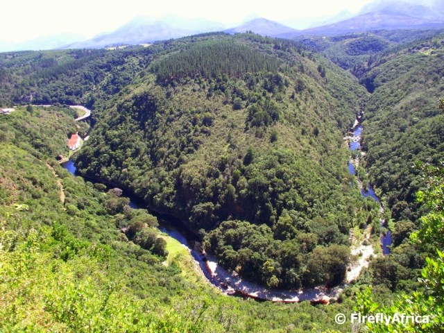 One of the most extraordinary scenic view points on the Garden Route must be the one above Wilderness of the Kaaimans River flowing below. As the river makes it’s way through the valley towards the sea it forms the outline of the map of Africa. In the photo part of the Kaaimans Pass can be seen on the left hand side. Getting to the lookout is fairly easy. Just follow the road through the town and up the steep hill to the top. There are signage up and a tourism volunteer manning the lookout for anybody who has questions. Otherwise just stop at the tourism information office as you come into town for directions.