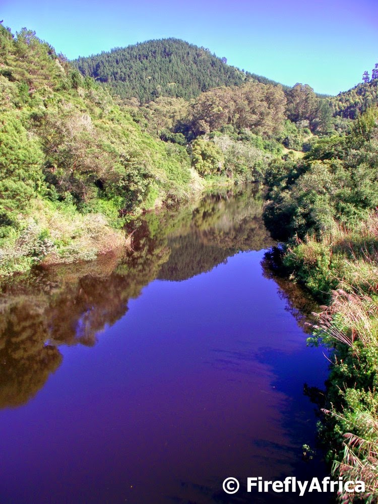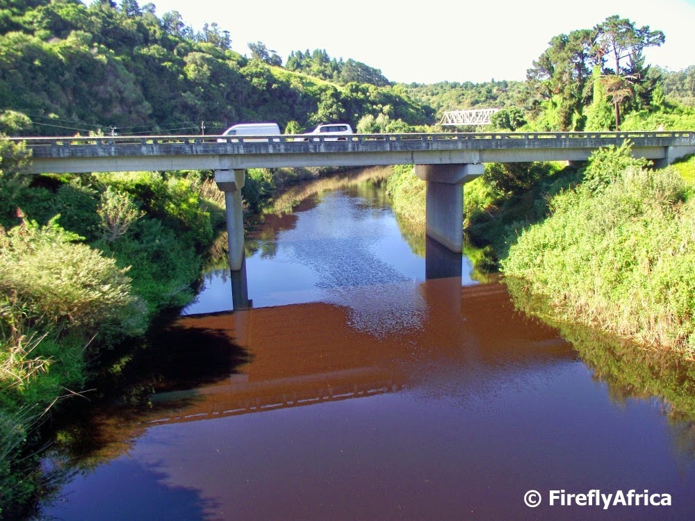 The Goukamma River flows past this spot down to its mouth at Buffels Bay.  Goukamma is a named from the Khoisan word for “dark waters”.  The dark color of the river water originates from tannin picked up in the forest through which the water passes.  The river is ideal to paddle on while getting in touch with nature and on a warm late summers morning looked very inviting.  Unfortunately the long road to Cape Town (along with a couple more Geocaches) were calling.