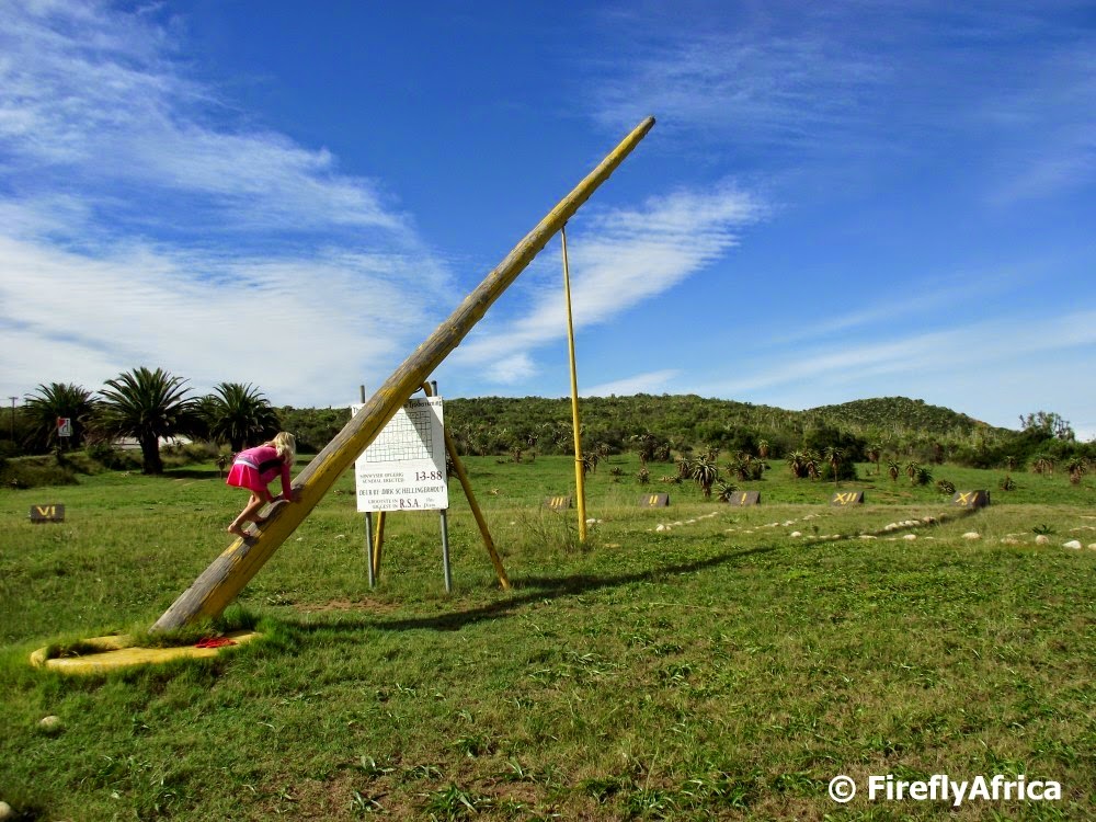 Just outside the town of Hankey in the Gamtoos Valley visitors will find the biggest sundial in the Southern Hemisphere. Kids will always be kids and the monkey comes out of them when they see something they can climb. It was no different when Drama Princess decided to see how far she could go up the Hankey Sundial. The sundial was built by local farmer Mr Dirk Schellingerhout in 1989 to commemorate the town’s 160th anniversary. It is located at the entrance to the town and just below Vergaderingskop, the final resting place of Saartjie Baartman. The Hankey Sundial has a diameter of 34.6m and the gnomon is 18m high, and weighs one ton.