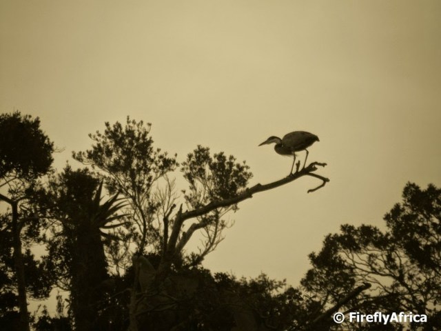 Spending one night at Trennery’s on the Wild Coast, I decided that I wanted to explore a bit. Upstream from the Qolora River Mouth is a spot called The Gates and it was here that I caught this heron sitting on a branch at dusk.
