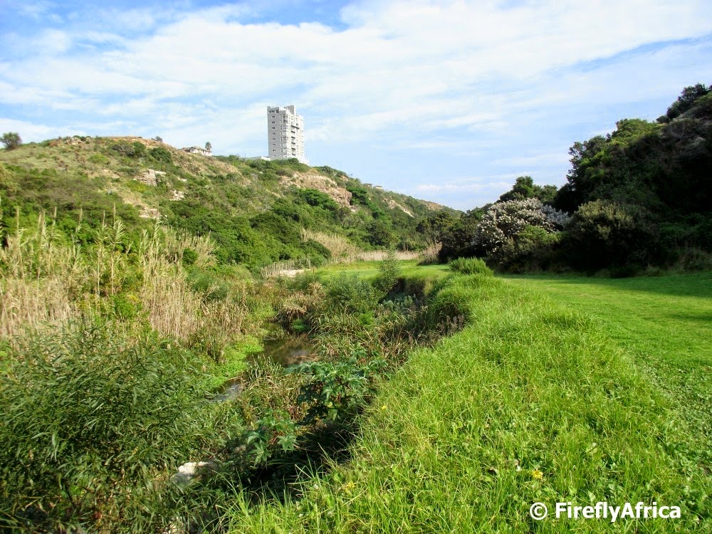 Most people who access the Baakens Valley do so from How Avenue off Park Drive, Wellington Park or Walmer, but I wonder how many know that you can also do so from an entrance just off Brickmakerskloof. I took a walk into the park from here the other day and you quickly loose sight of all signs of civilisation except for the towering Knysna apartment building on the Walmer side of the valley.