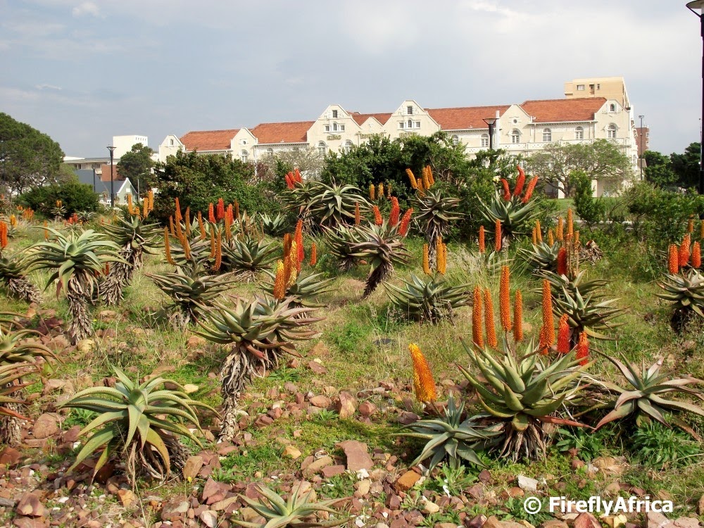 The aloe garden on the Donkin Reserve in front of the lighthouse building forms part of Route 67 and contains aloes taken out on the reserve before the redevelopment took place. The aloes are in full bloom at the moment making the garden particularly beautiful.
