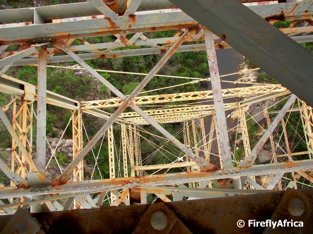 The Van Staden’s rail bridge is the second highest railway bridge in South Africa, and the highest narrow gauge bridge in the world. Construction on the bridge was completed in 1905 with it being 156m long, 77m high and containing 1 112 cubic metres of concrete and 574 tons of steel. I peeked through a gap down to the bottom of the gorge and snapped this last picture. Hectic to think what it must have been like building this.