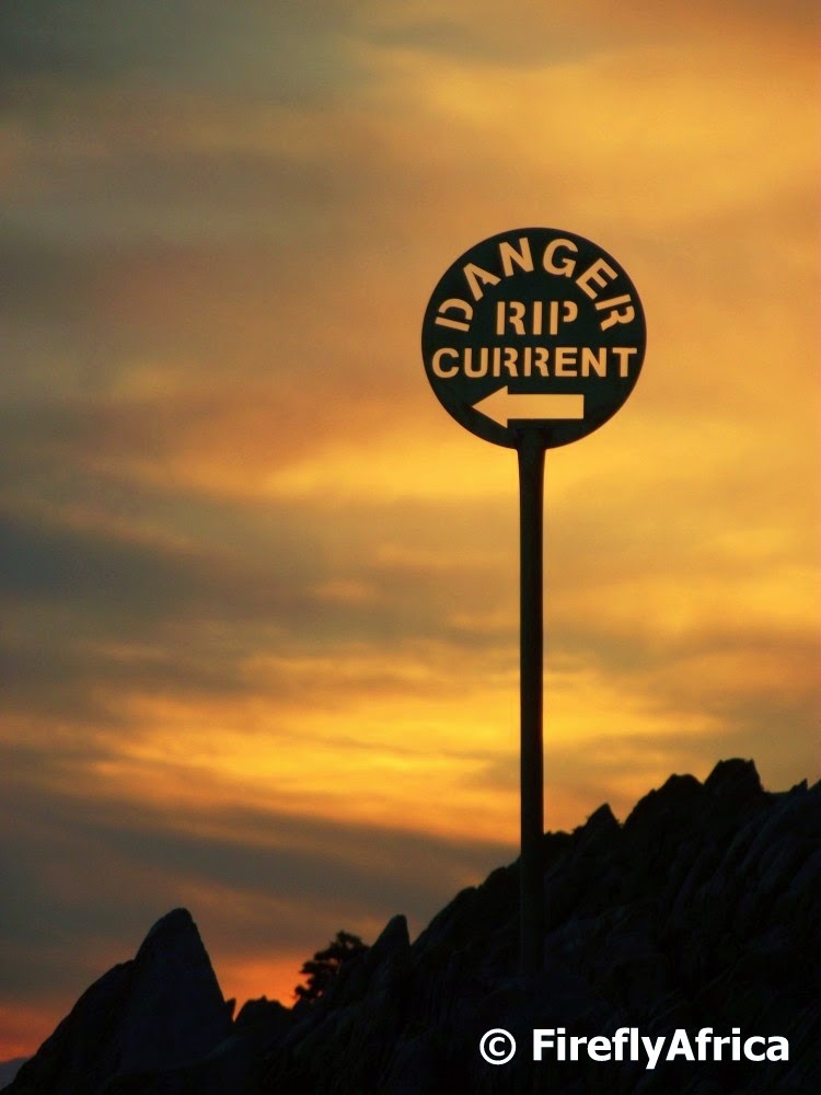 Eersterivier in the Tsitsikamma is a beautiful piece of coastline with stunning swimming spots between the rock. If you do decided to hit the ocean itself you have to be careful of the rip currents created by all the reefs and rocks as indicated by this sign I photographed at sunset.