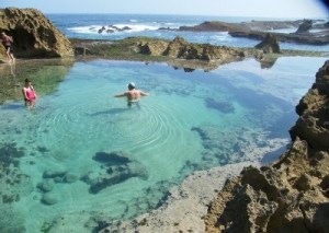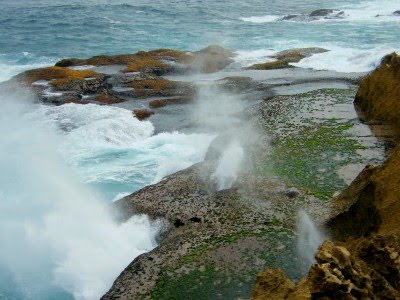 At low tide we took a walk around the sea side of the sand stone formations and found a couple of holes in the rock. We came back at high tide and looked down onto it from above. They turned out to be blow holes, shooting water up into the air from them every time a wave hits the rocks. When you explore the rock pools and around the back of the sand stone formations, just be aware and keep an eye out for spiky sea urchins, specially if you have children with you. The pools and gullies are actually excellent for snorkeling so bring your equipment with you if you would like to explore a bit under water as well. Another warning though. Keep within the safe zones when swimming and snorkeling as there are dangerous rip tides beyond the rocks and gullies.