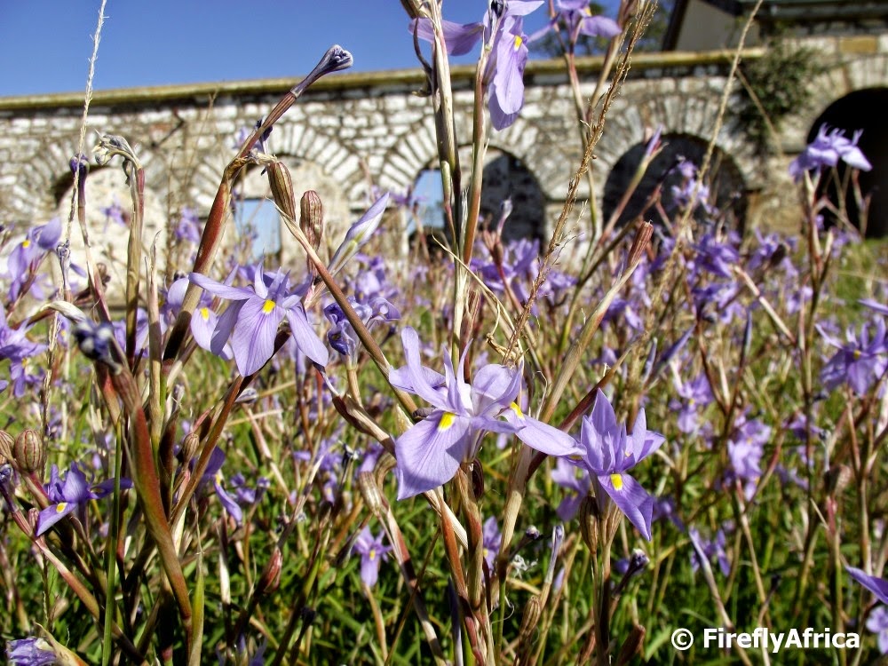 A little while ago I stopped by Fort Peddie on my way from Port Elizabeth to East London and discovered this historic site while hunting for a Geocache. The thing with most travelers is that they are so focused on the big things that they often miss the little ones. In this case the big things were the old tower and the cavalry barracks which I both went to have a look at. The former to find the cache and the latter because I wanted to see it as I was there already. I noticed these pretty purple flowers growing outside the old stables and the staff working in the office nearby must have had a good laugh at me crawling around trying to get a nice pic without catching my own shadow.