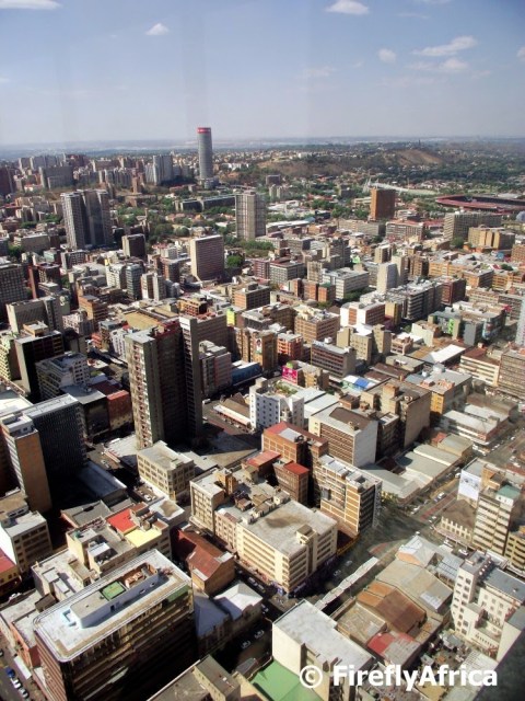 The great part of being on the City Sightseer tour is that they have a guide permanently based at the Carlton Centre who takes you through the shopping centre and up to the top.  Entrance tickets are only R15 per person and the trip up the express elevator to the 50th floor literally takes seconds.  Once at the top the guide took us around showing us the 360 degree view down, and I mean literally down, onto Joburg.  The Carlton Centre is the tallest building in Africa (I think I’ve said that already) and once the tallest building in the southern hemisphere.  It stands 223m high and was built between 1967 and 1974.  The view is absolutely magnificent and the guide comes in very handy as he points out all the interesting landmarks as you move around the viewing windows.  A great perk of the open bus tour.  He also makes sure that you get back down and to the bus stop before the next bus comes by.  I have to be honest.  If I didn’t go on the tour I probably would never have had the opportunity to do this so just another great reason to get your ticket for a City Sightseeing Joburg tour when you are in the City of Gold.
