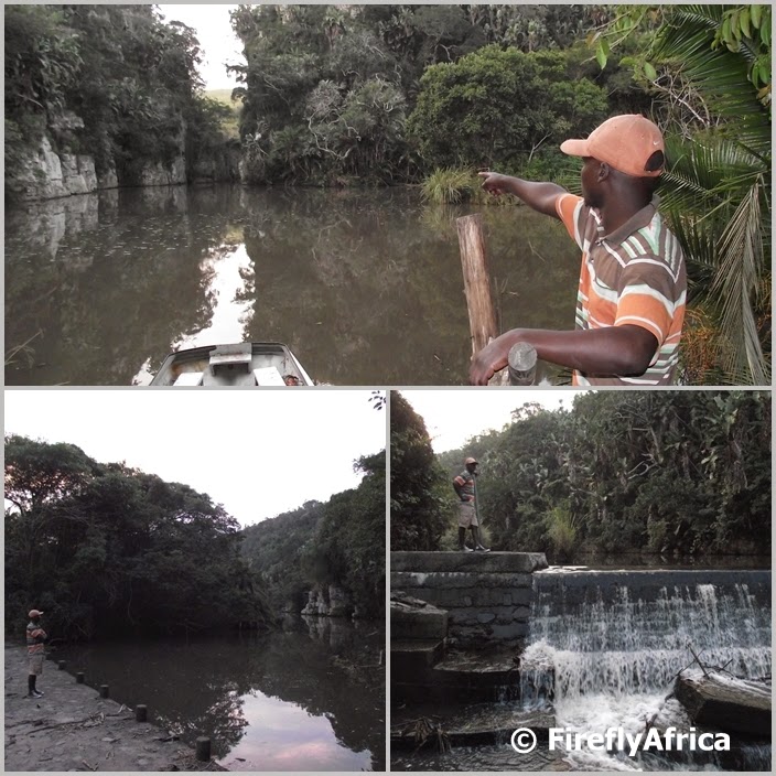 After asking me to park my car in front of his grandmother’s house, we headed down the two track road full of holes and dongas on foot (there was no way my car was going to navigate that) and down into the forest around the river.  Lizo told me about the area, the river, the village and it’s people and about himself.  He is unemployed and came back to the village after finishing school in Cape Town.  He actually worked for Trevor’s Tours at some stage and really wanted to do guiding in the area again to take people to The Gates and the Jacaranda.  Once down by the river he pointed out The Gates and some of the other interesting formations.  The Gates is a narrow gorge with steep cliffs rising on either side (the remnants of a geological fault and water erosion).  The water at The Gates is said to be 7m deep.  From here he took me downstream a bit to the weir from where water gets pumped and a low water bridge.  As you can see in the photos the light was unfortunately fading fast and I wanted to get back to the car before dark.  When we got back to the village Lizo wished me well for the rest of my travels.  He didn’t try to solicit a tip from me (which so many official tour guides often do) but I decided to give him something for his effort anyway.  He truly deserved it and without him I would probably have gotten lost and stuck down there in the dark.  I wish there was more people like him around willing to go out their way for visitors even if they don’t work in the tourism industry.