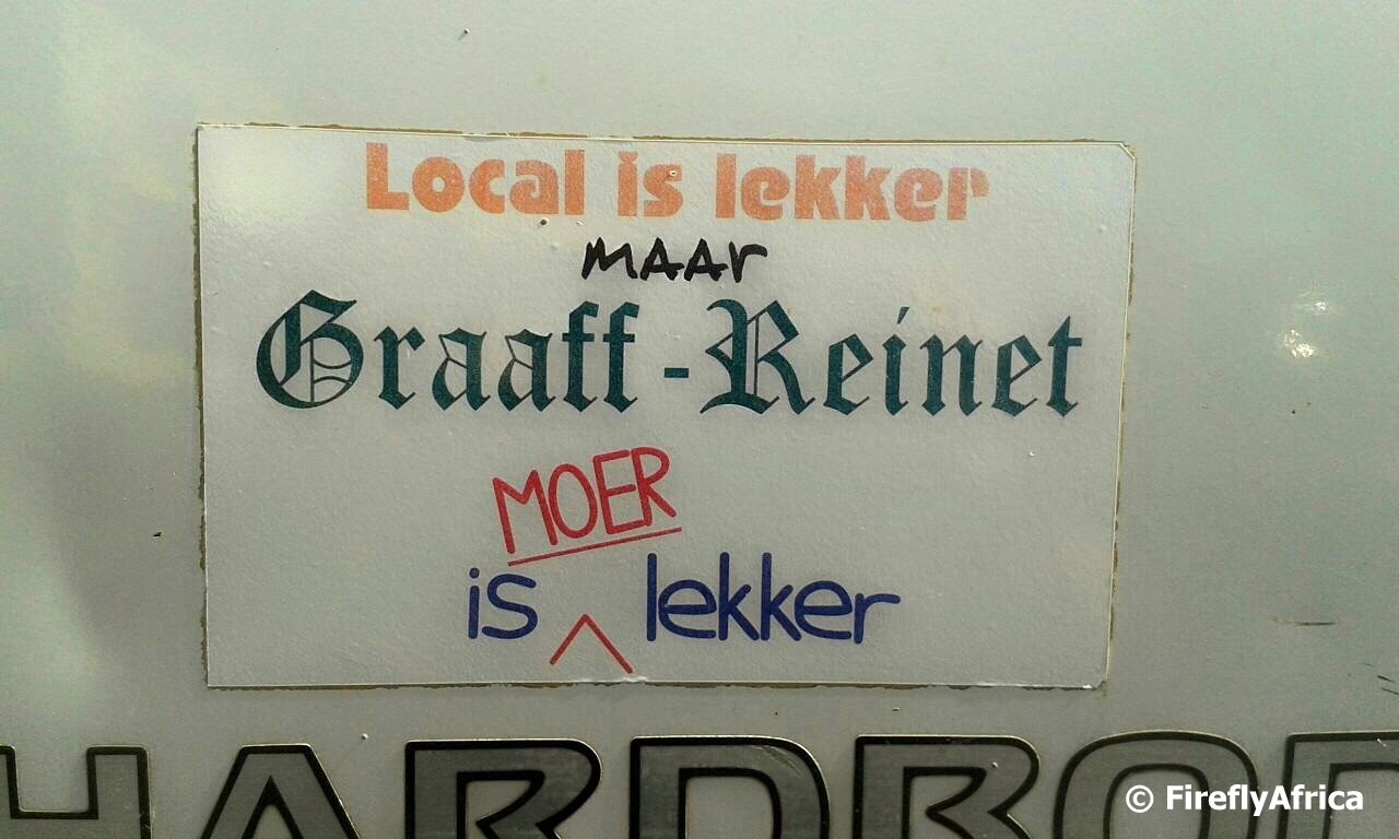 Last Sunday I had to drive up to the Karoo town of Graaff-Reinet for a Monday meeting and to avoid coming back empty handed I snapped a bunch of pics with my trusty Samsung.  I love Graaff-Reinet.  It’s one of my favorite towns and I never mind spending a bit of time there.  One of the other people who were there for the meeting saw this sticker on the back of a bakkie in town and snapped a pic which they sent to me.  I think it says it all.