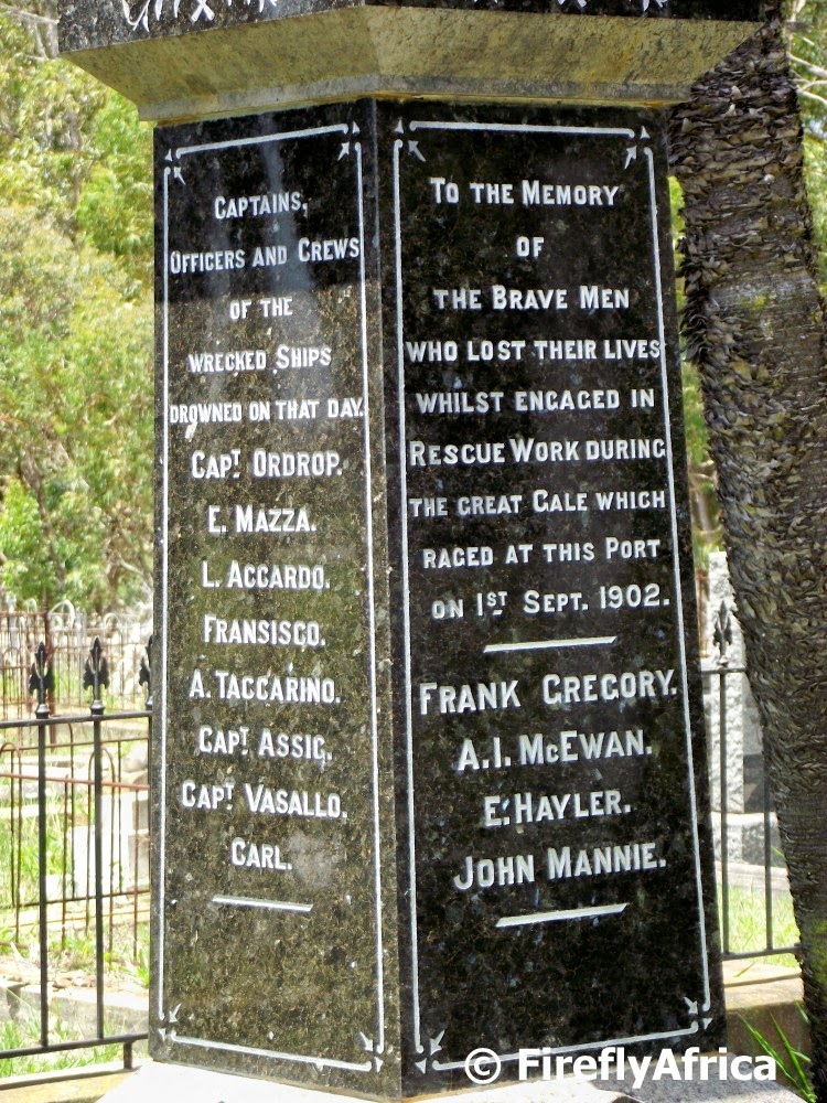 These were the words in the Herald newspaper the day after the Great Gale of 1901. A storm during which 18 ships were wrecked and 38 people killed. Although the event is fairly well known amongst those who know something of the history of Port Elizabeth, I’m sure very few actually know that there is a monument to those who died in the South End Cemetery.