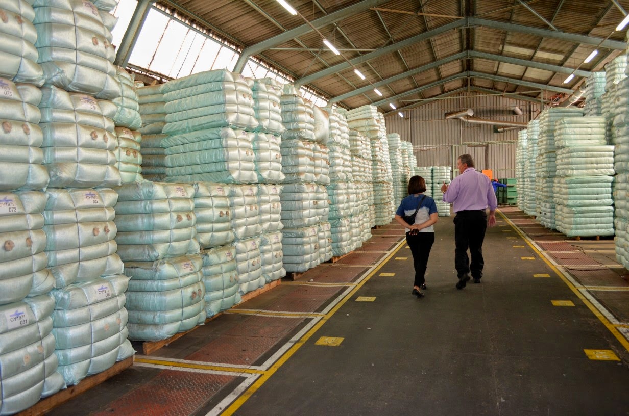 Remember the bales of raw mohair arriving at the factory I posted on Sunday? Well, these are the bales of clean mohair that gets exported after the whole cleaning process has been completed.
