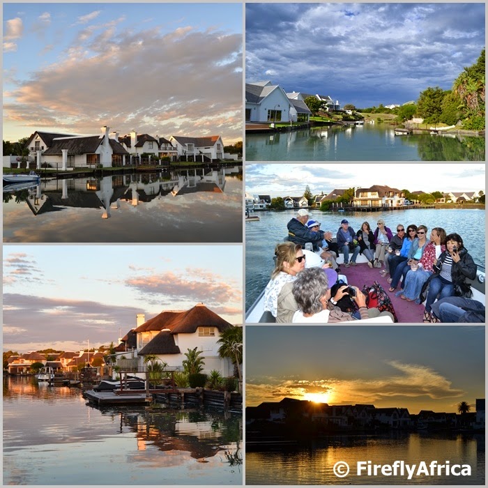 Our recent weekend in St Francis saw us join Brian Cunningham of Brisan on the Canals and a bunch of ladies on their last leg of the Chokka Trail for a canal cruise on the Swan of Brisan. The one hour long cruise took us up and down the canals which was first dredged by Leighton Hulett in 1967. As I mentioned before, all the houses are white walled and black roofed (with quite a few of them being thatched) as this conformed building style was insisted on by Hulett who originally owned the farm on which St Francis Bay developed. Brian pointed out interesting facts along the canals while there were gasps from everybody when he told us about the devastation of the huge fire that burned down 76 houses in 2012. The vastness of the event only really comes home when you see the area first hand. Just before sunset we cruised out onto the Krom River to see the sun set over the Kouga Mountains with a drink in hand (that’s us having the drink in hand and not the sunset) before heading back to the guesthouse to disembark. I can truly say that you haven’t experienced and seen St Francis Bay until you haven’t been on a cruise as the best part of the canals can’t be seen from the road.