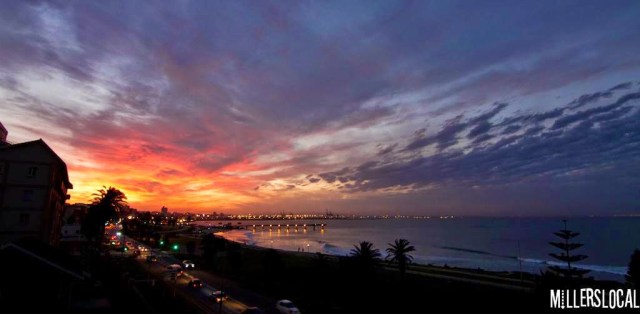 Port Elizabeth has had a couple of absolutely stunning sunsets this week.  Yesterday local surf blogger MillersLocal posted a time lapse of Wednesday night’s sunset taken from her apartment window overlooking the beachfront *seriously jealous*.  I immediately asked if I could post it as this week’s Video Friday and she proceeded to also send me pictures of the sunsets earlier this week.