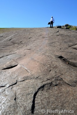 On a recent trip up the Wild Coast I stopped at the Nelson Mandela Museum in Qunu and was taken on a tour by one of the guides.  Part of the tour takes one about 200 meters away from the museum buildings to a couple of granite rocks on the side of the hill on which the museum is situated.  It was on these rocks that local kids, including Mandela himself, came to play.  Back then the kids would slide down the rock sitting on pieces of wood or whatever object they could find that would slide across the rock.  While walking down I wondered why the guide was carrying the plastic seat section of a chair (like the ones we used to sit on during assembly at school).  The answer came very quickly as he demonstrated before handing me the seat.  It was time to slide.  At first you wonder if you would actually be able to go down on the seat and the next moment you’ve got to throw out anchors cause that rock is a lot smoother than you think.  It may not be able to compete with “adrenalin activities” like zip lining or kloofing, but the experience is just as memorable because of where you do it.  I can imagine a couple of boys going home with bruised knees and toes after a day at the sliding rock though.