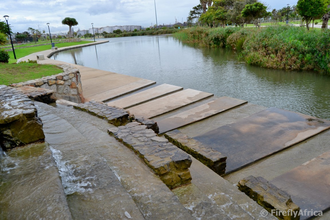 At the one end of the Kings Beach Park’s lake is an elevated area from where water cascades down into the lake. This elevated area have been here as long as I remember. Long before the redevelopment took place. When I was small there was a kiddies waterslide and small pool where we often went to swim. I remember the day so well when we were big enough to leave the kiddies slide behind and go to McArthur Pool’s slides for the first time. That was many many moons ago.