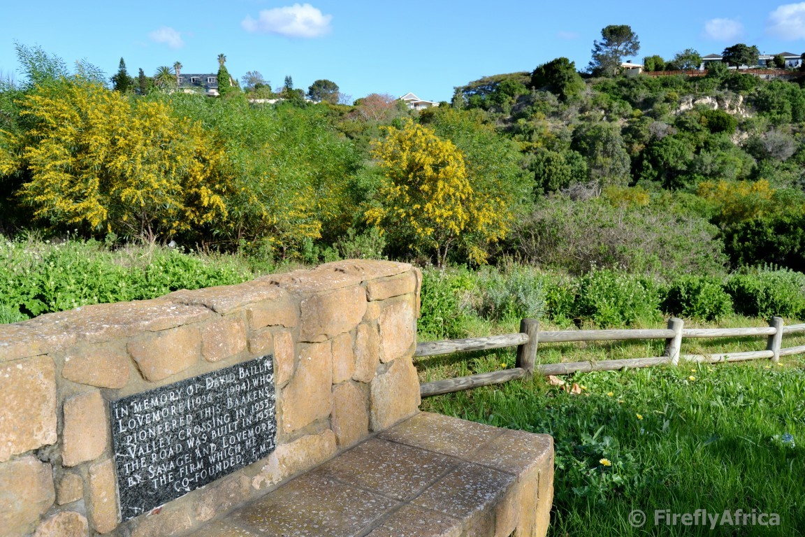 As one drives through the 3rd Avenue Dip from Mangold Park side through towards Newton Park, there is a parking area to the right just after the bridge from where the Lower Guinea Fowl Trail starts.  On the edge of this open space is a stone bench with plaque on it.  The bench and plaque is a little “monument” to David Baillie Lovemore (1926 – 1994) who pioneered this crossing of the Baakens Valley in 1955.  The road itself was built by Savage and Lovemore (a firm he co-founded) in 1957.  Now there’s a bit of info I bet you didn’t know.