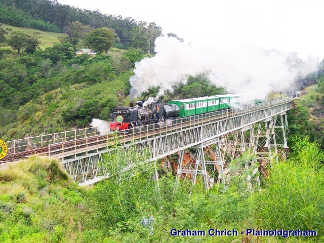 I received this breathtaking picture of the Apple Express crossing over the Van Stadens Railway Bridge, the highest narrow gauge railway bridge in the world, from fellow Geocacher Graham Chrich yesterday.  Graham was in the Van Stadens area for the Rhino Run last weekend and decided to do a couple of Geocaches located in the area.  Looking for info on the gorge he came across a post of mine about the railway bridge and it reminded him of a trip they took as a family on the Apple Express when it was still running.  As usual the train stopped short of the bridge allowing passengers to walk across before following.  This was when he took this picture.  How we all long for the Apple Express steam train to run again.