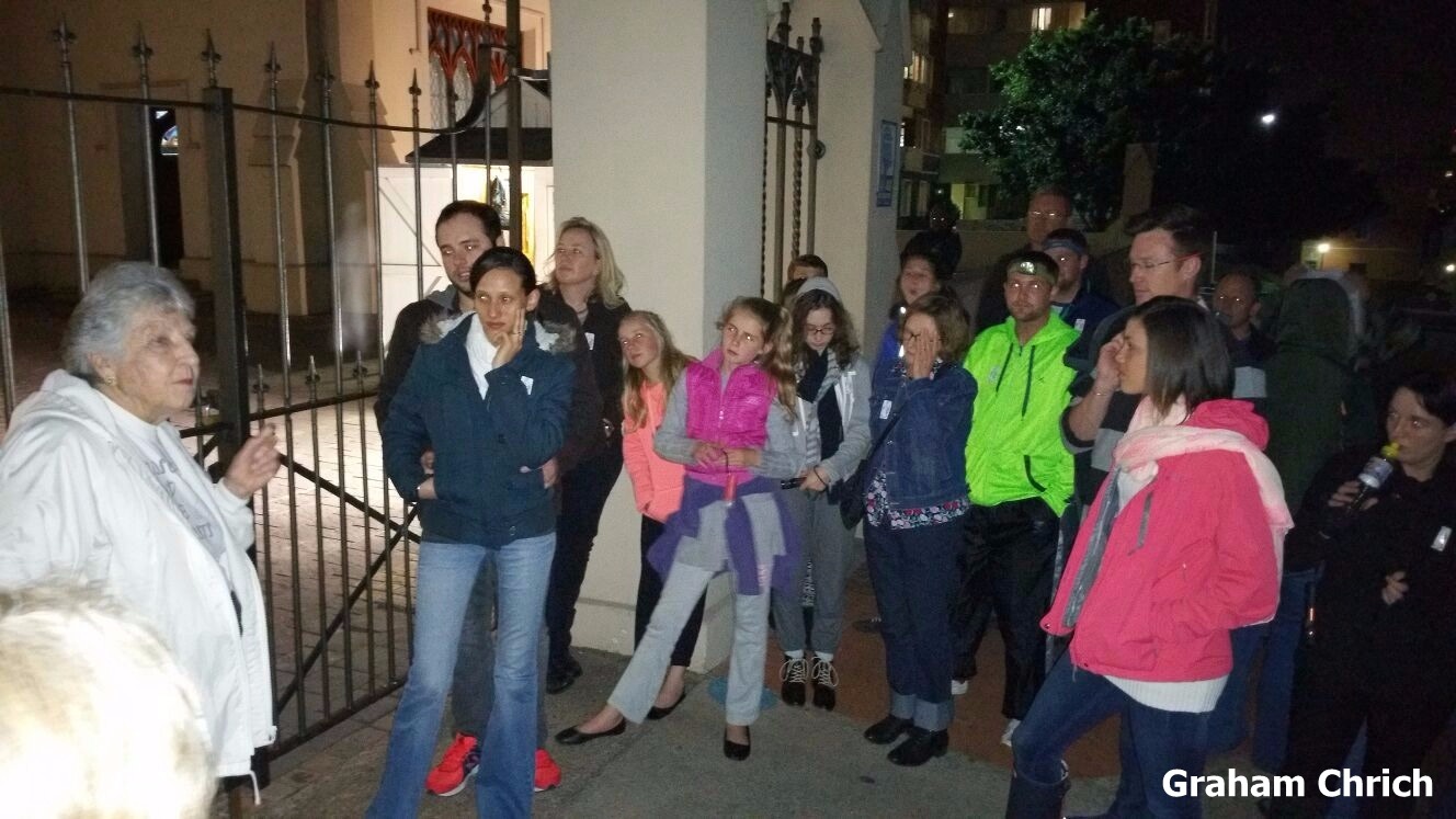 Over the weekend the local Geocaching community went on a Ghost Walk through Central led by Rose Trehaeven. The walk was organised by fellow cacher Graham Chrich (better known in caching circles as Plainoldgraham) and he kept those of us who couldn’t make it updated via our WhatsApp group with pictures to show us what we were missing. He took this picture in front of the Grey Institute and as soon as he had posted it one of the other guys commented about the figure in the background. It seems that only those of us not on the tour spotted it as those there didn’t see anything out of place. Can you? Have a closer look.