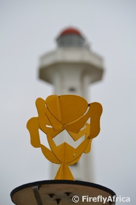 All along the Mosaic Steps up onto the Donkin Reserve from Chapel Street there is a series of light structures cut out of metal. Forming part of the public art along Route 67, the project was a collaboration between student and school pupils with 34 of these telling stories of our past, present and future. I was looking for a way to take a photo of some of the structures without just photographing them with the Donkin as background and decided to use both the Great Flag and the Donkin Lighthouse as background objects.
