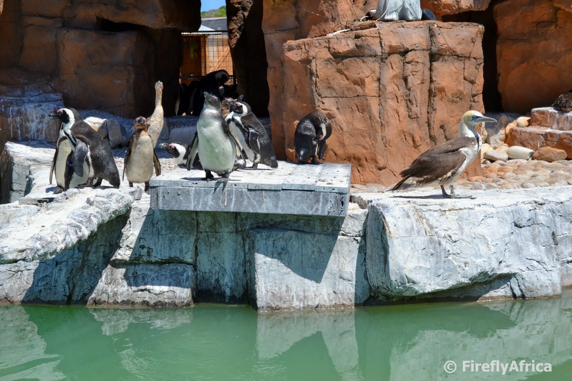 The residents of the penguin pool at SAMREC having their morning sun worship. Notice how it’s not just penguins residing in the penguin pool. There’s also a gannet on the right and a cormorant in the back.