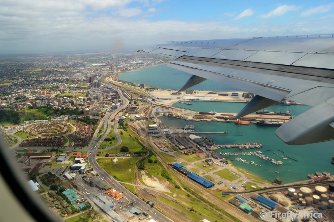 Last week the Damselfly and I got to fly to Johannesburg for the annual Lilizela Awards of which I was one of the judges. Even though I get to road trip quite often working for ECTOUR, I don’t fly nearly as much as I did in my previous job. When I do and I fly alone, I like an aisle seat but the Damselfly wanted to sit by the window and it gave me the opportunity to snap a few pics during take off while leaning over her. This is looking north while heading out towards Algoa Bay. South End is in the forefront with the city centre and North End beyond on the left and the Port Elizabeth Harbour on the right.
