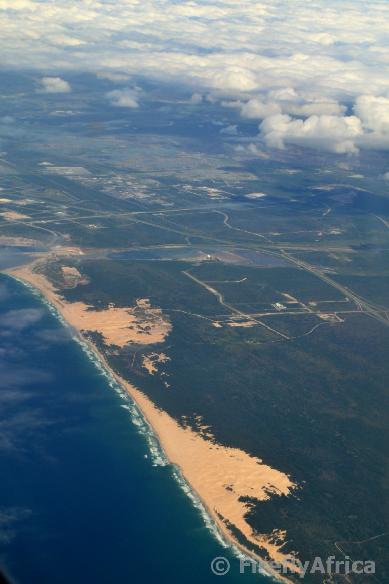 Driving along the N2 from Port Elizabeth to Colchester you pass the Coega harbor and then it’s a straight stretch to the Sundays River with not much to see on either side. Have you ever driven that road and wondered what the coastline between the harbor and Sundays look like? I didn’t get to see it up close but I did fly over it (and man was my arms tired – yes, old joke, I know) just after takeoff on our way to Jhb. It would be nice to walk this piece of coastline, just to see it up close, don’t you think?