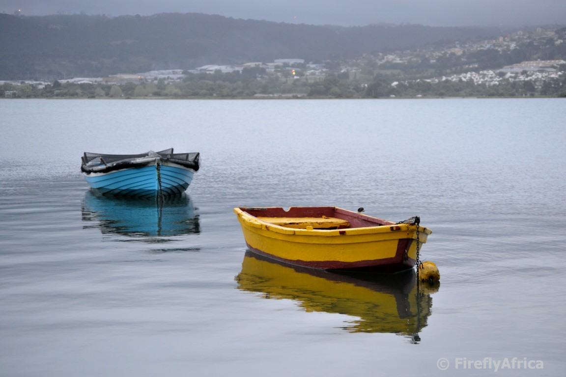 It was a late afternoon on a gloomy day, our only day, in Knysna and I was taking a walk around Leisure Isle with a couple of friends. The mission was actually one of a Geocaching kind, but two of us had our cameras with us as well and once the cache was found it became a photography trip. With not a lot of sunshine around it meant that there would be no spectacular lagoon sunset so we found ourselves a couple of subjects in these two row boats moored a few meters away from the island. It wasn’t long and we were both flat on our tummies to try and get a low angle and a nearby fisherman was so interested in what we were doing that he nearly missed the slight tug on his line.