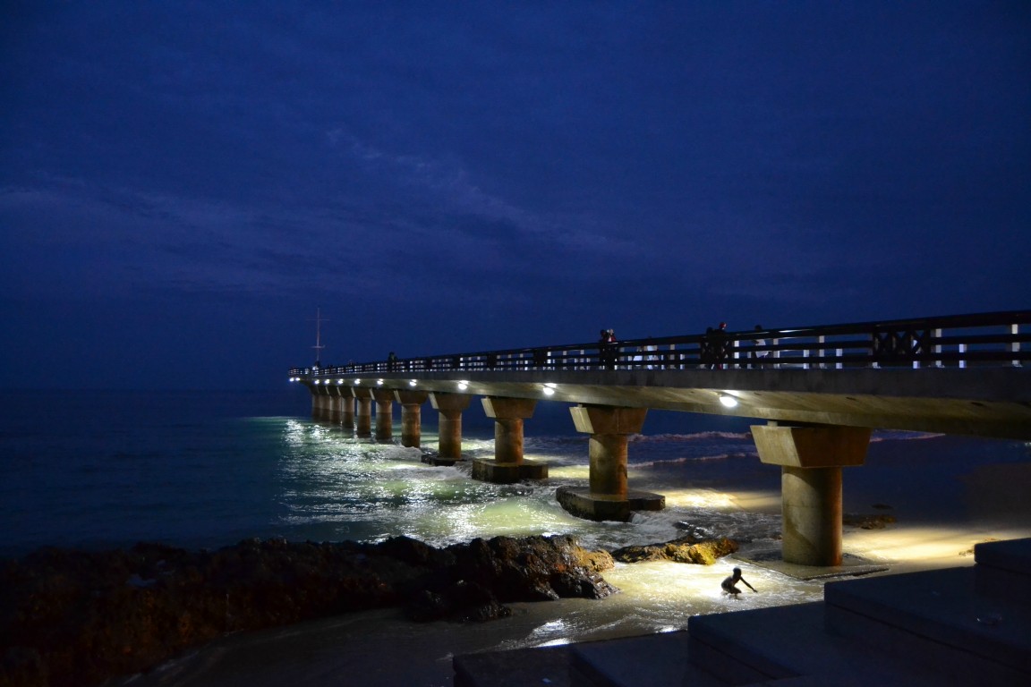 Since its revamp the pier is looking great at night, especially with the new brighter lighting. It’s actually so bright that it is possible to swim at night, like the little boy is doing.