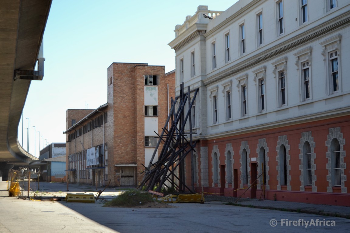 A few years ago (quite a few if I’m correct), the historic Port Elizabeth Railway Station was damaged in an underground gas explosion. The spot was cordoned off and the building “braced” with wooden poles. So sad that all this time later and Spoornet (Transnet) still haven’t done anything to restore and fix the building. An absolute crying shame.