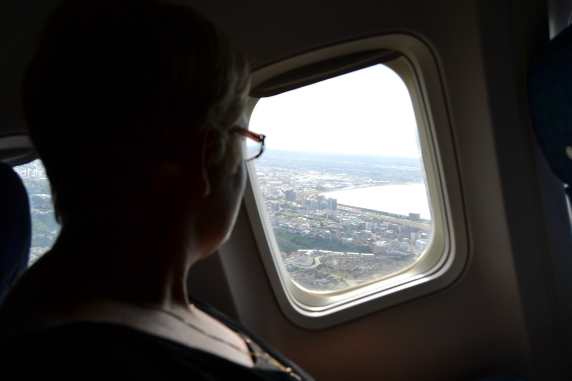 Three weeks ago the Damselfly and I flew to Durban for a weekend in Umhlanga courtesy of the InterContinental Hotels Group and Holiday Inn Express Umhlanga. Here the Damselfly looks out over PE through the plane window after we took off. Ah, but we really live in a beautiful city doesn’t matter what angle you look at it.