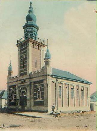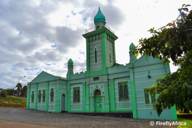 With the month of Ramadan starting today, I thought it would be appropriate to do a Then and Now featuring the Masjied-Ul-Aziz (also known as the Pier Street Mosque or Green Mosque). The mosque was officially opened in July 1901 and the first Imam was Abdul Wahab Salie . The mosque was destined to be destroyed by the declaration of the Group Areas Act to make way for a freeway off ramp, but the matter went to the United Nations where Islamic countries prevented its destruction, but not before the minaret had been removed already and bulldozers stood waiting.