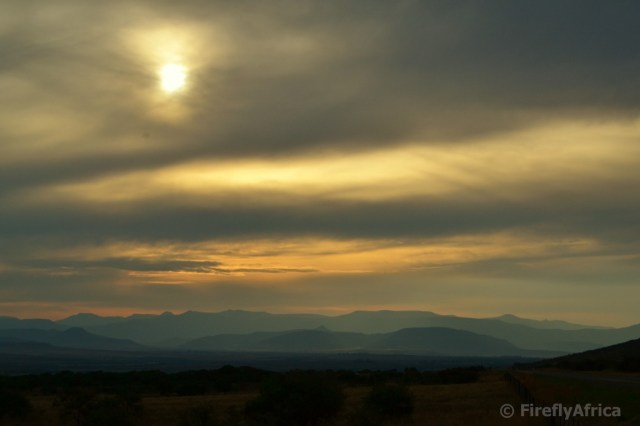 Road tripping bring you the possibility of many memorable things. Beautiful destinations, interesting people, scrumptious food, fascinating places and, in this case, a beautiful Karoo Heartland sunset. Although it was probably still another hour before sunset, the sun heading for the distant mountains through hazy skies made for a sight beautiful enough to make me pull over on my drive to Cradock.