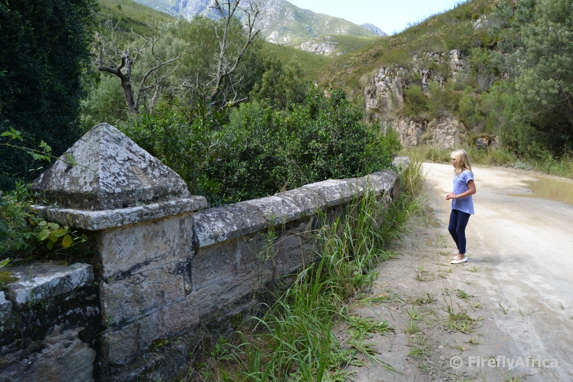 Dropping down into the valley we stopped at the old stone bridge over the Keur River. The bridge was designed and built by Charles Mitchell, another prolific South African road builder of the time. I climbed down the side of the bridge for two reasons. First to see it from the side and secondly to find the Geocache hidden there. What’s any road trip without a spot of Geocaching anyways?