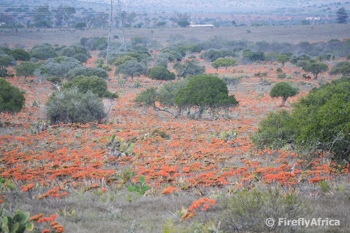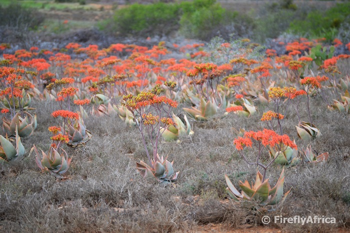 Just as the “normal” Aloes in the Karoo Heartland is done flowering, it’s the turn of the Coral Aloes.  A drive through the southern Karoo Heartland (on the N10 just over the Olifantskop Pass from Port Elizabeth) in the Eastern Cape two weeks ago had me stop a couple of times and grabbing for my camera with literally fields of flowering Coral Aloe stretching away from the road.