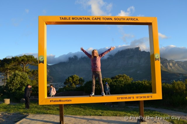 Two weeks ago we had a whistle stop visit to Cape Town to attend the Geocaching MEGA that takes place somewhere in South Africa only every two years. We literally drove the 800 km down to Cape Town on the Friday afternoon, attended the MEGA on the Saturday and returned on the Sunday. One of the events during the day took place on Signal Hill and I just could not pass the opportunity to snap a pic of Drama Princess in the picture frame up there with Table Mountain in the background.