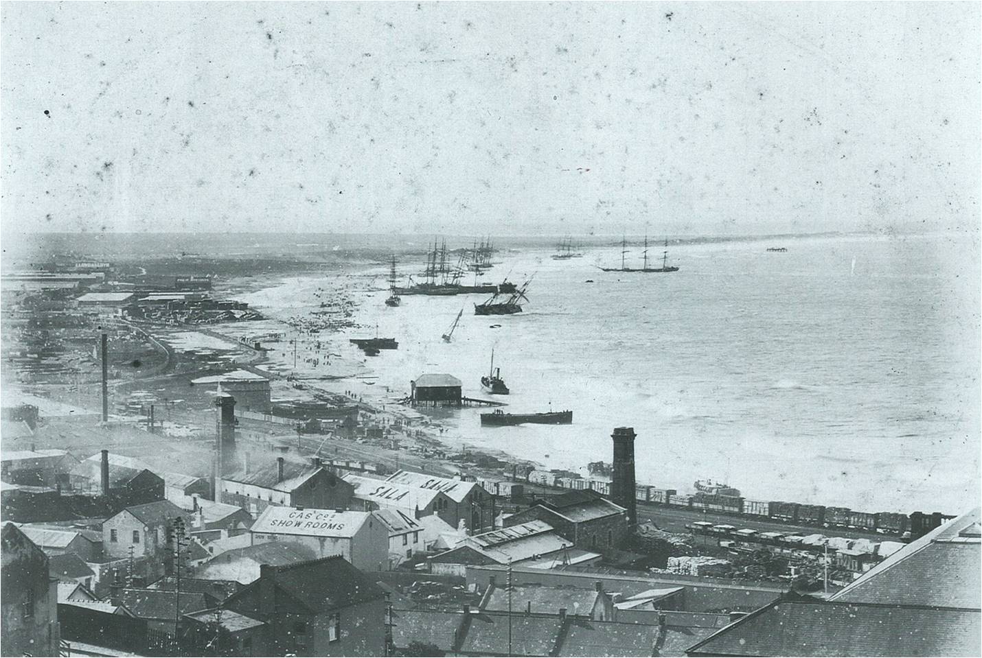 North End Beach back in the days.  A stretch of sand all the way to the Swartkops River which could possible have become one of Port Elizabeth’s prime beachfront real estate areas if it didn’t fall in the hands of Railways and municipality.  This pictures dates back to 1902 right after the Grate Gale when 21 ships ran aground along North End Beach.