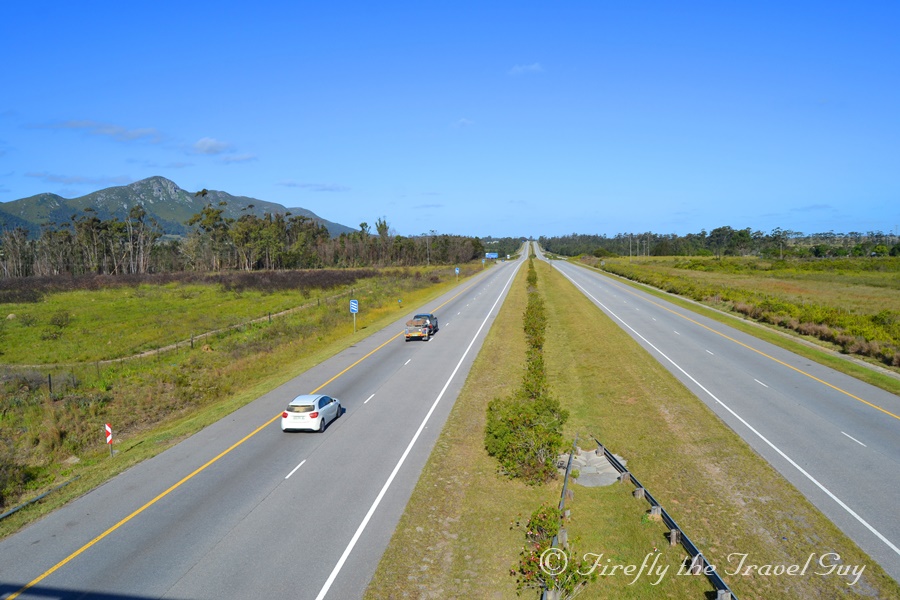 Standing on the road bridge over the N2 in the Van Stadens Wildflower Reserve looking down the highway towards Port Elizabeth. Looking down on this dual carriage way it’s hard to believe that it is the main highway just west of Port Elizabeth. Nice and quiet. Just the way we like our roads.