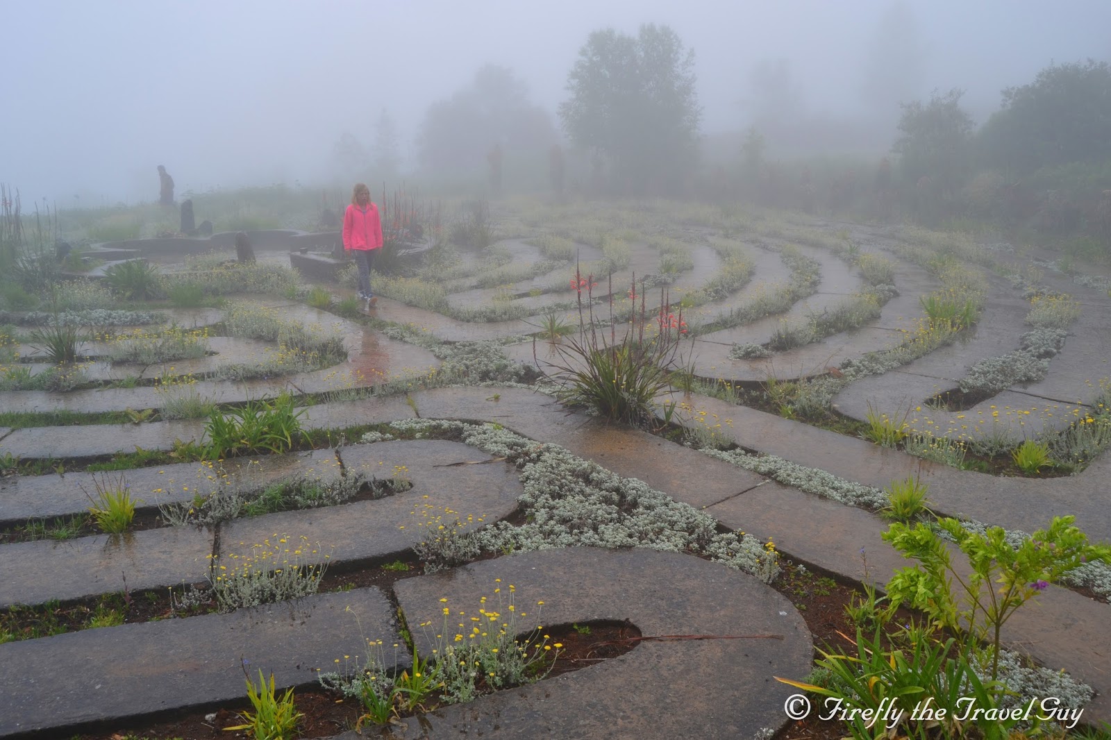 Talking of meditation. Our last stop for the day was at the Labyrinth at The Edge. Unfortunately we could not see the actual edge nor the stunning view from here but the KidZ did take on the labyrinth. What is the difference between a maze and a labyrinth. Although the two terms are basically synonymous, there is a difference. In this case a maze refers to a complex branching multicursal puzzle with choices of path and direction, while a unicursal labyrinth has only a single path to the center. A labyrinth in this sense has an unambiguous route to the center and back and is not difficult to navigate. So with this mouth full I watched the KidZ try and cover the distance to the middle as quickly as possible although generally a labyrinth is supposed to be covered slowly and in a state of meditation, prayer or deep thought.