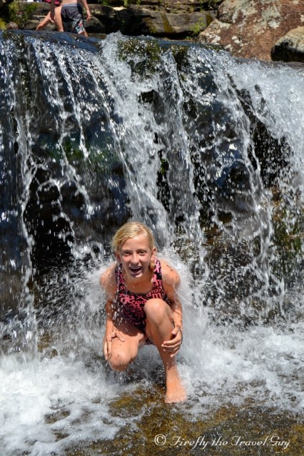 Miggie having a waterfall shower