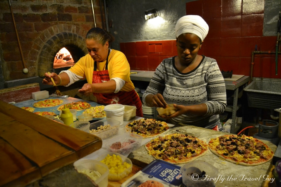 As we were a decent sized group in town for a meeting the Monday morning, a special request to open on the Sunday night for us was granted and I was glad it was. Not a lot of pizza places around where you can stand at the kitchen chatting to the cooks preparing the pizza or where you can peek into the pizza oven just before sticking your camera halfway in just to be shoo’d away because it’s time to take the pizzas out. No well drilled conveyor belt from a fast food pizza joint in the city. No, local ladies making the pizza just the way they were trained by Bruno. Mine was delectable. Their special for the night, Kudu Salami Pizza. Highly recommendable if you are in town.