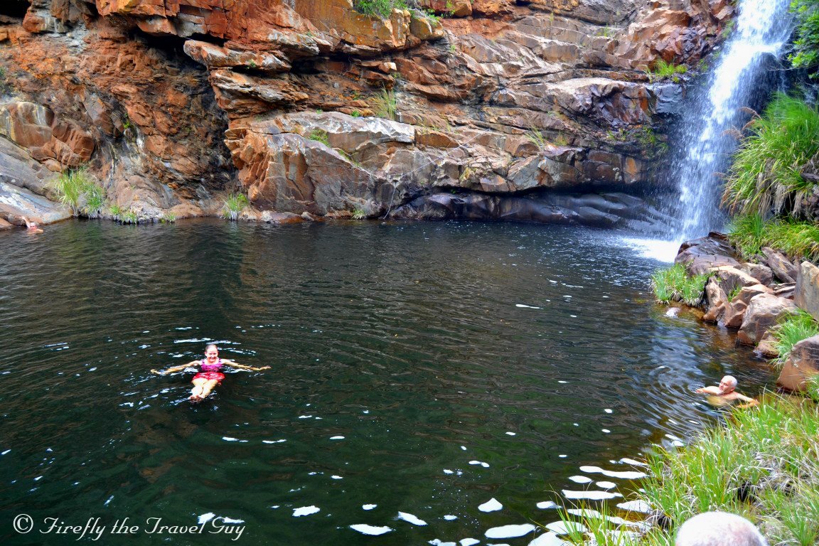 The Damselfly chose not to swim, but did fill her bottle from the waterfall.