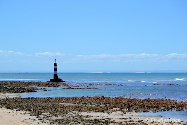 The beacon out at Cape Recife is one of two beacons that were used for shipping purposes before the invention of modern navigation technology. The second beacon is the lollipop beacon on Marine Drive where Admiralty Road and Marine Drive comes together. Ships sailing along the coast from the west had to line up the two beacons before they could turn into Algoa Bay. This ensured that they were well clear of Thunderbolt Reef at the point as well as the reefs inside the bay itself.
